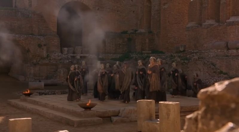 *Отношенията и събитията са ритмично коментирани от Гръцкия хор...