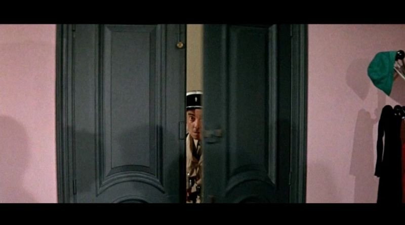 Отвън паркираният неправилно "Мерцедес" е същият, преследван от Крюшо и шофиран от жена - красивата вдовица на полковник Франсоа. Извиненията са първата и буквално "светкавична" близост, от която се разгаря "гръмотевична" любов.