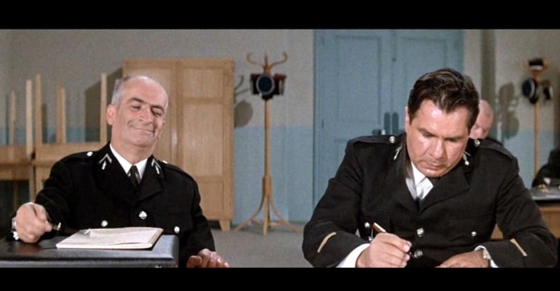 Въпреки изненадите в работата на полицаите най-любопитен винаги е личният живот, където голямата опасност предстои. Клод Жансак се появява с висока скорост на пътя и остава "екранна съпруга" на Луи дьо Фюнес и в други филми: "Голямата ваканция", "Оскар" и "Замразеният".