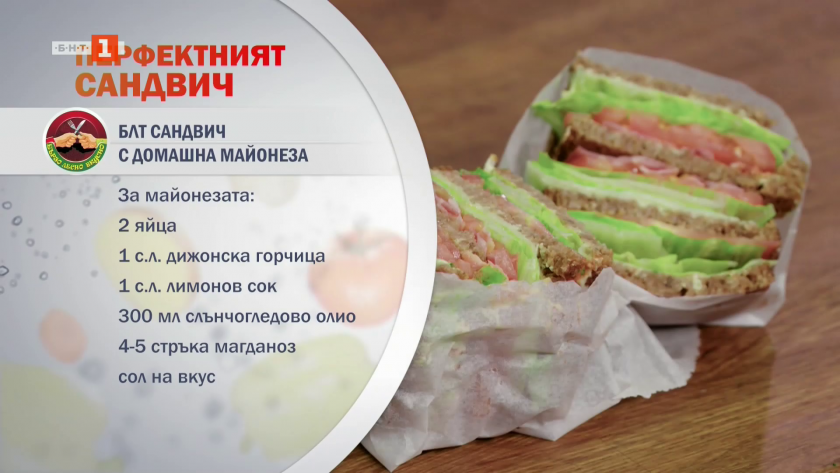 БЛТ сандвич с домашна майонеза и бутер банички със самардала