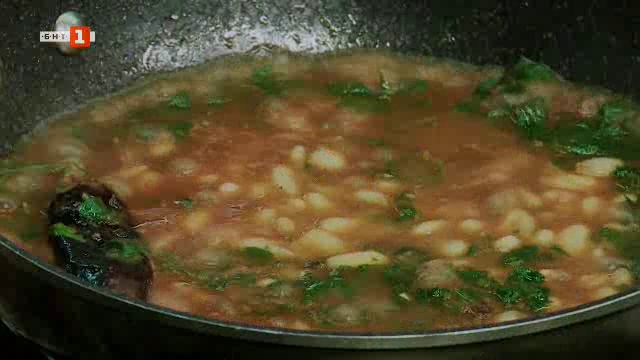 Пай с праз, спанак и извара и салата с печен боб и нар