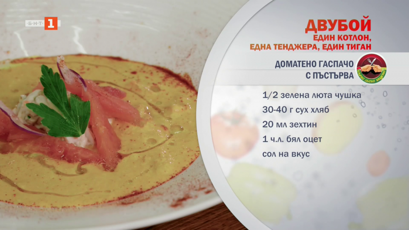 Доматено гаспачо с пъстърва