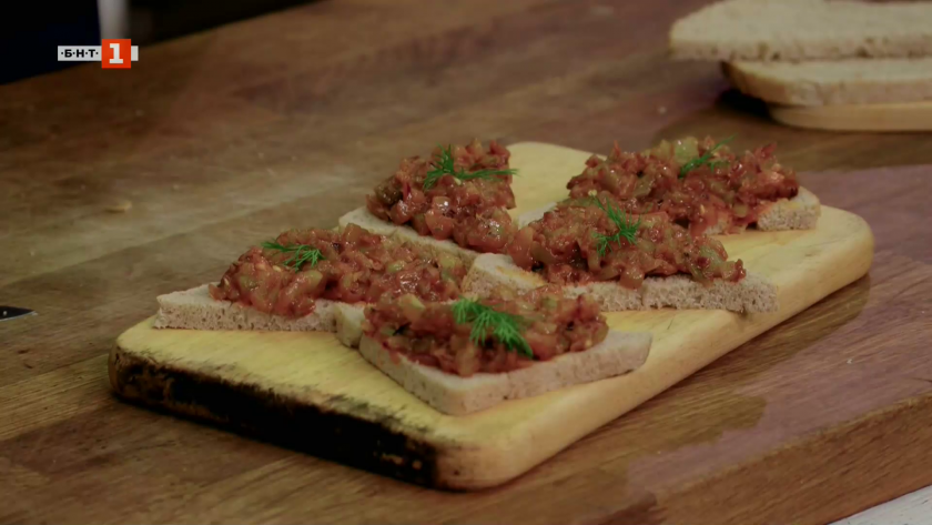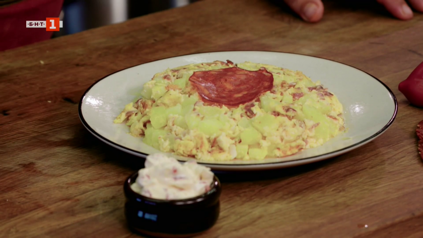Бюрек с праз, бекон и кашкавал и мармалад от ябълки и орехи