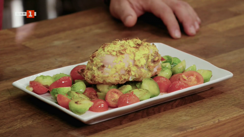 Кейк "Базлер брунсли" и пиле с брюкселско зеле