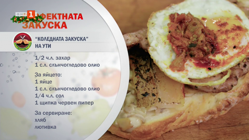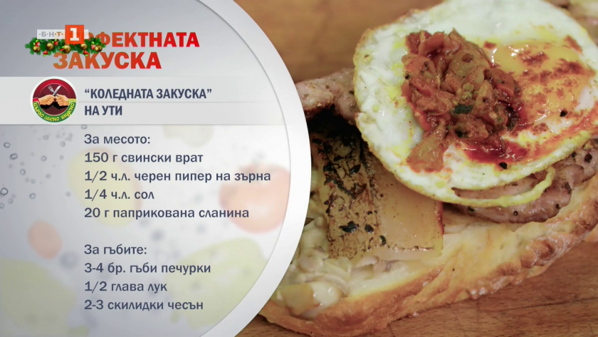 Бюрек с праз, бекон и кашкавал и мармалад от ябълки и орехи