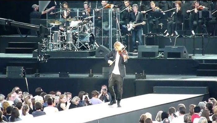 Виртуозният цигулар Дейвид Гарет представя своите "рок-симфонии" в концерт на открито в Берлин.