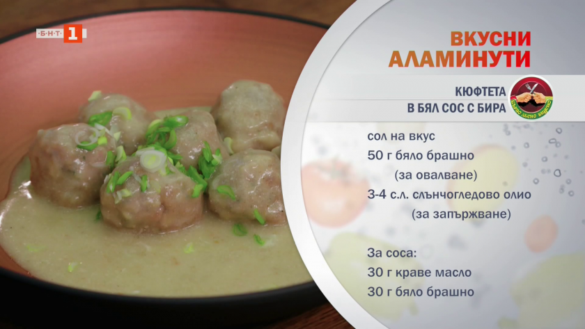 Кюфтета в бял сос с бира и кашкавалени питки със сушен домат