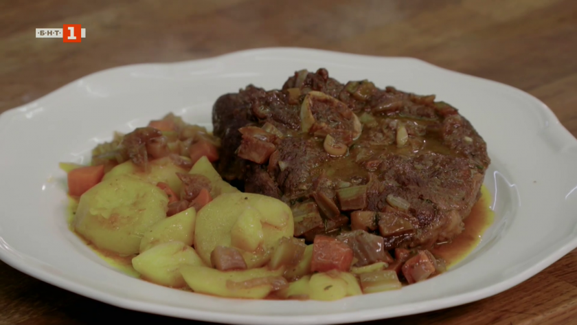 Супа с телешки бульон и менемен със суджук