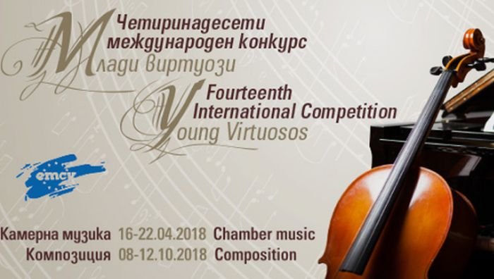 XІV Международен конкурс "Млади виртуози" се провежда в София - от 18 до 22 април и от 08 до 12 октомври 2018, съответно в два етапа - за изпълнители и за композитори.