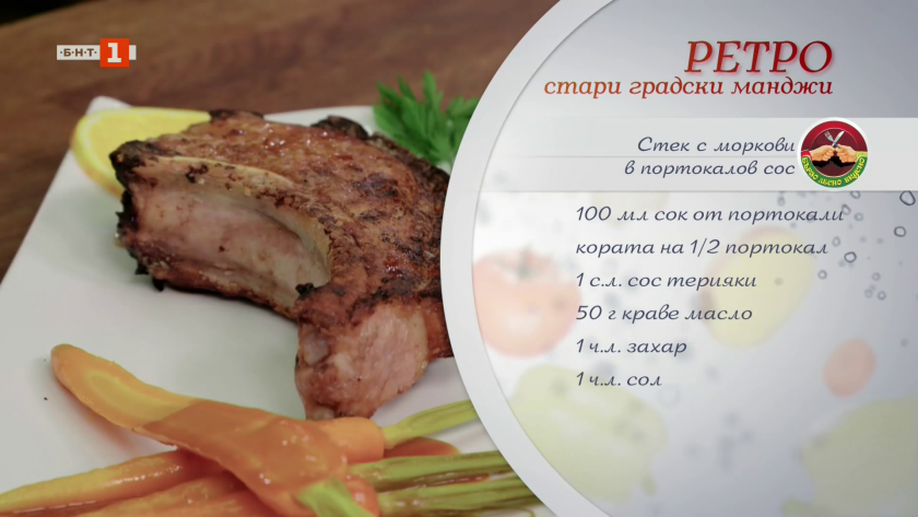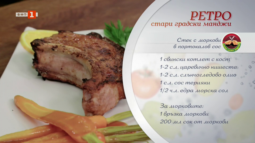 Пържоли с ябълково пюре и зеленчуци и салата Байрак