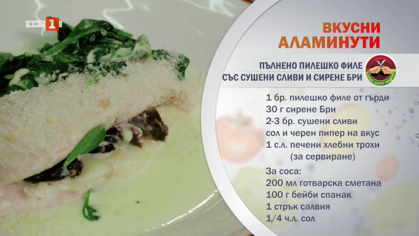Пълнено пилешко филе със сушени сливи и сирене бри