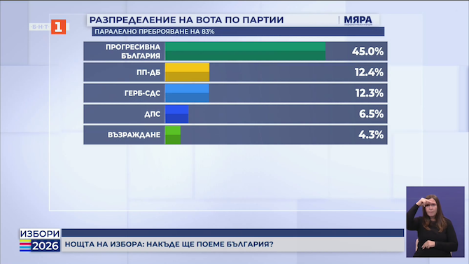 Паралелното преброяване на 83% на "Мяра": "Прогресивна България" - 45%, БСП е под 4-процентната бариера