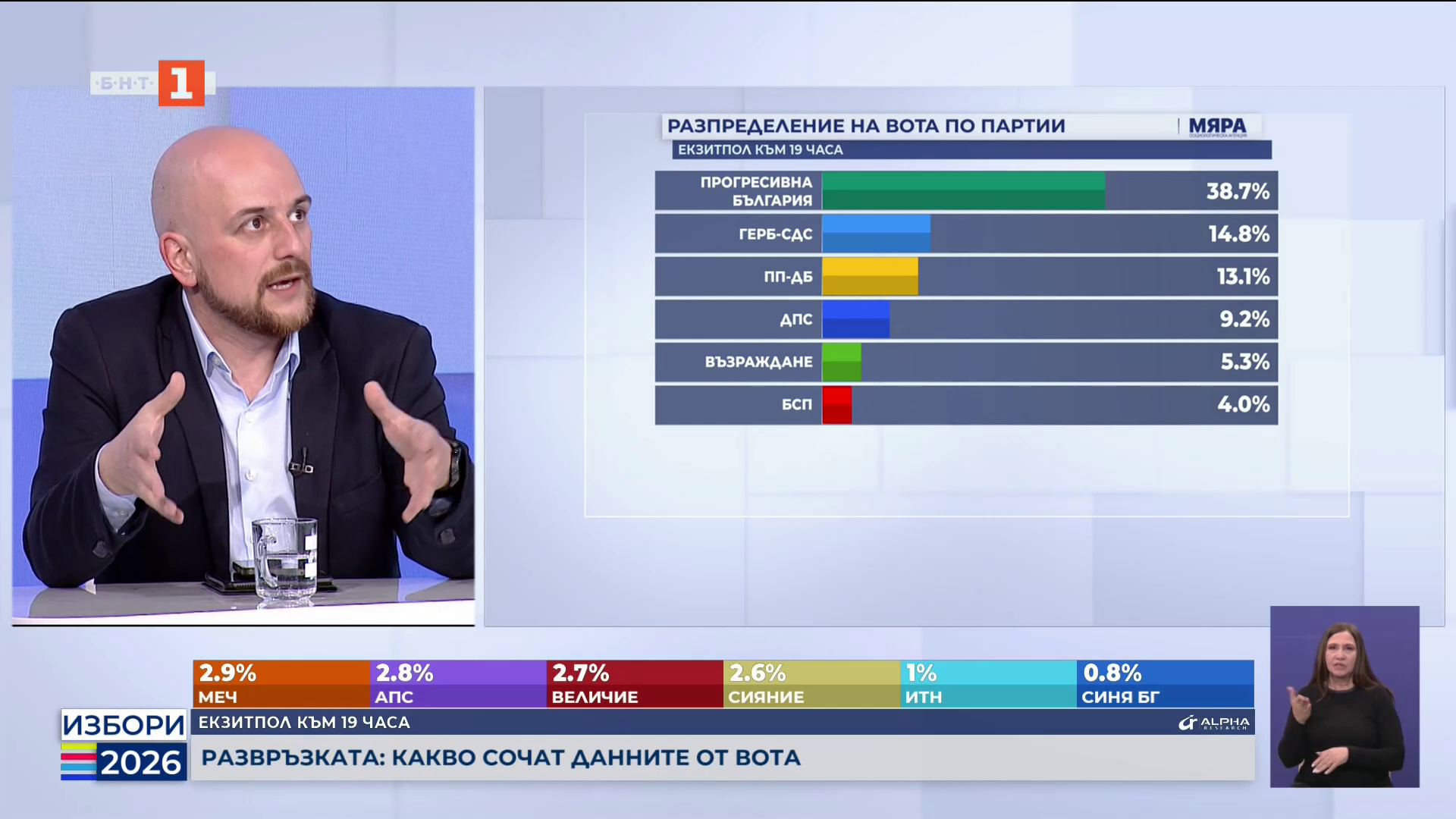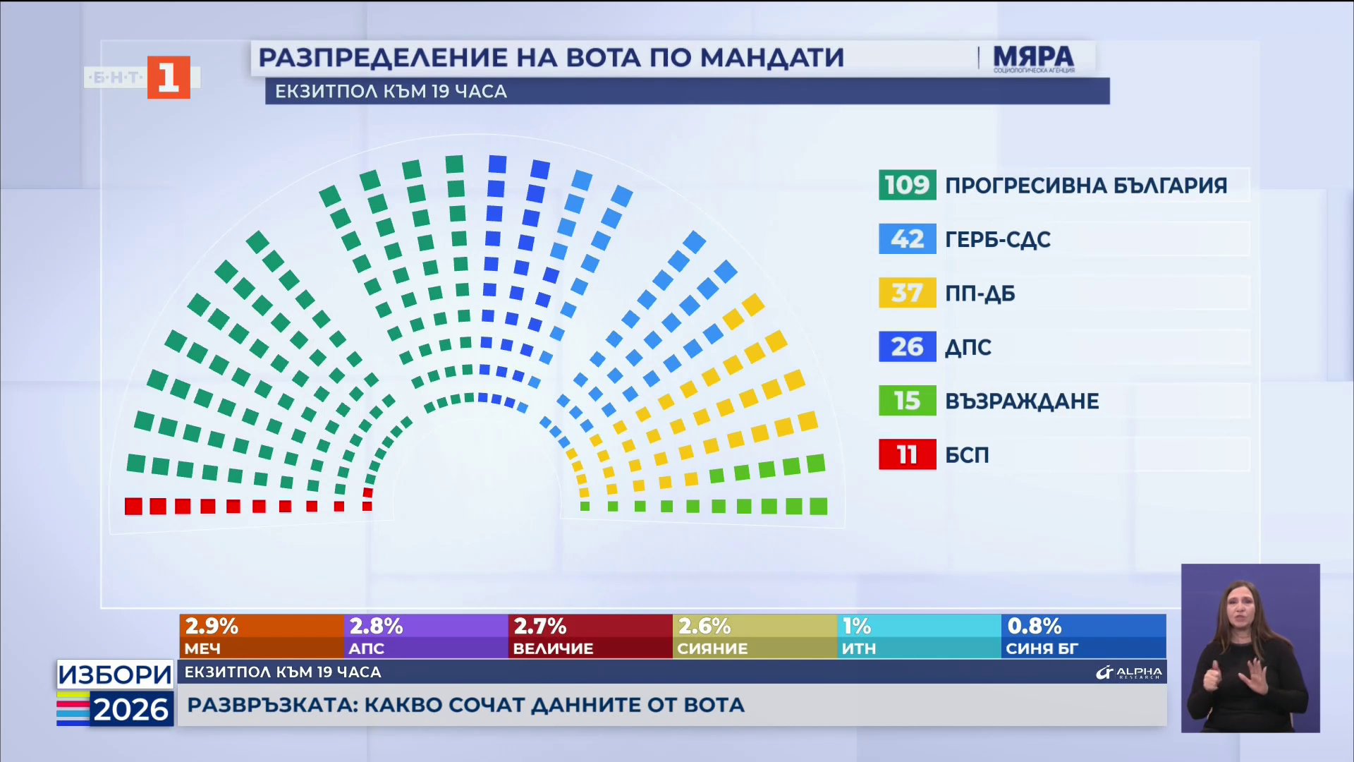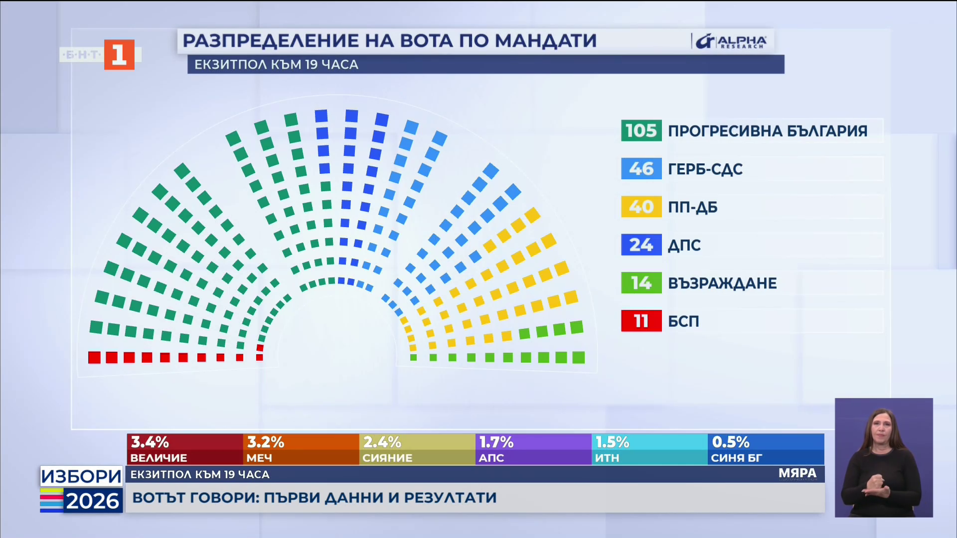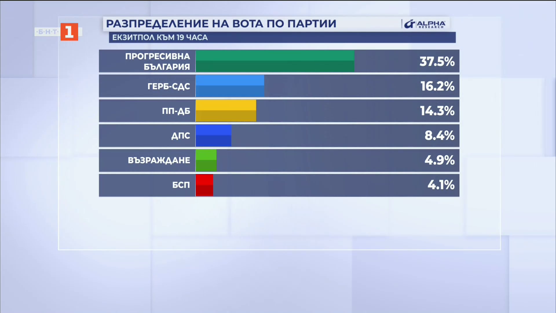 Резултатите от екзитпола на "Алфа Рисърч" към 19.00 часа:
