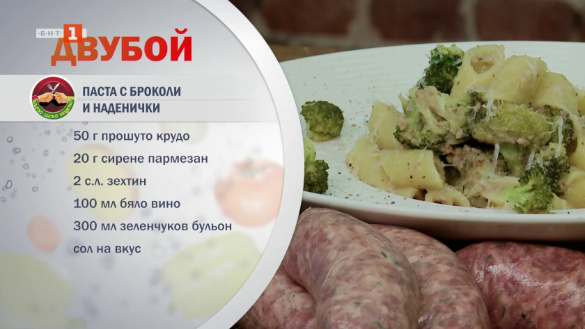 Паста с броколи и наденички и кюфтета от броколи с пармезан