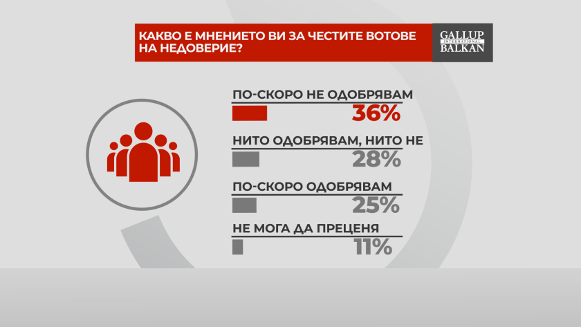 По-голямата част от българите не одобряват честото внасяне на вотове на недоверие към правителството. Това показва проучване на "Галъп Интернешънъл Болкан" за предаването "Референдум".
