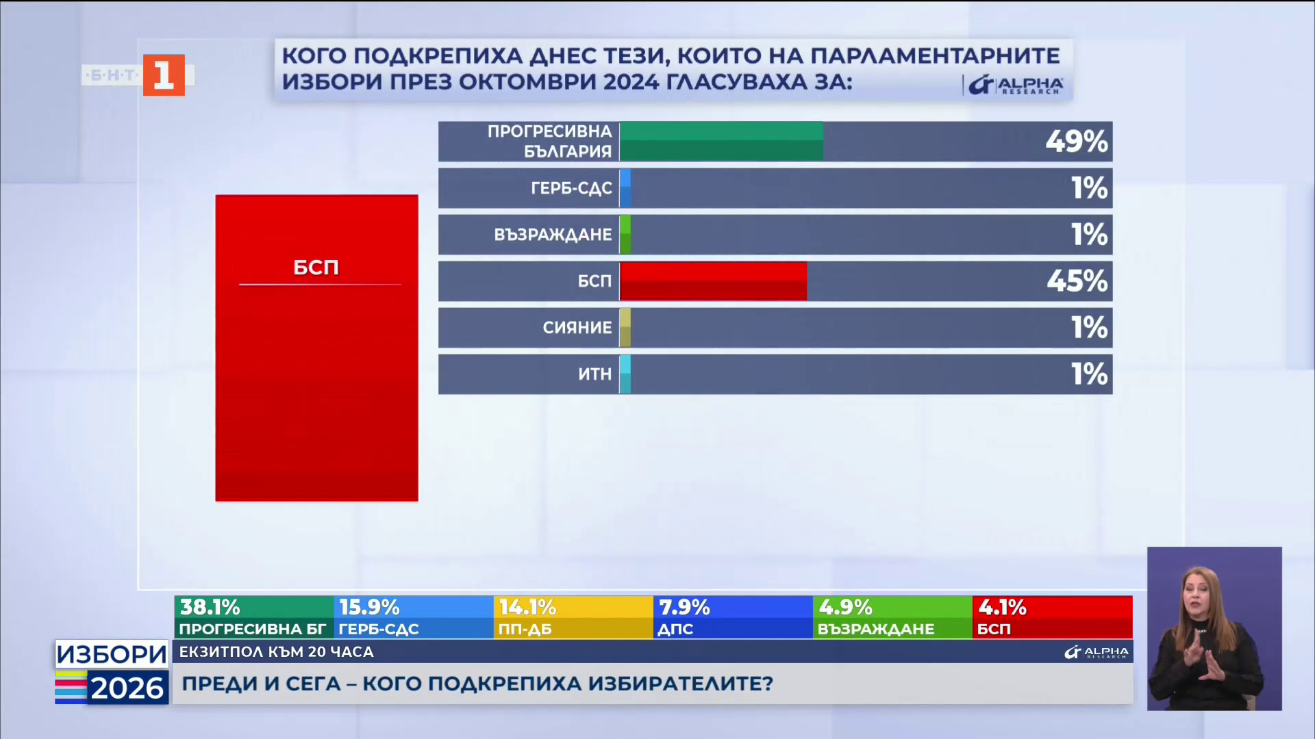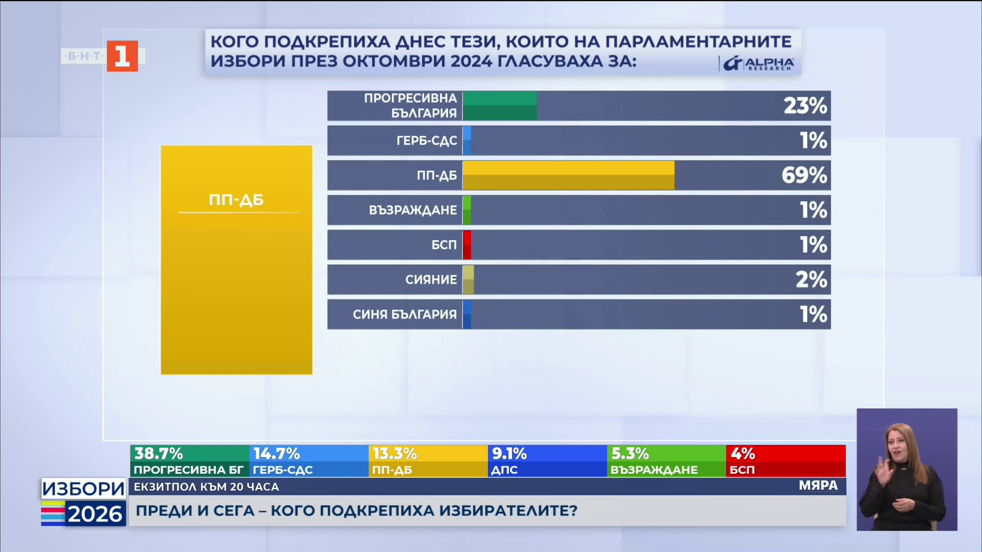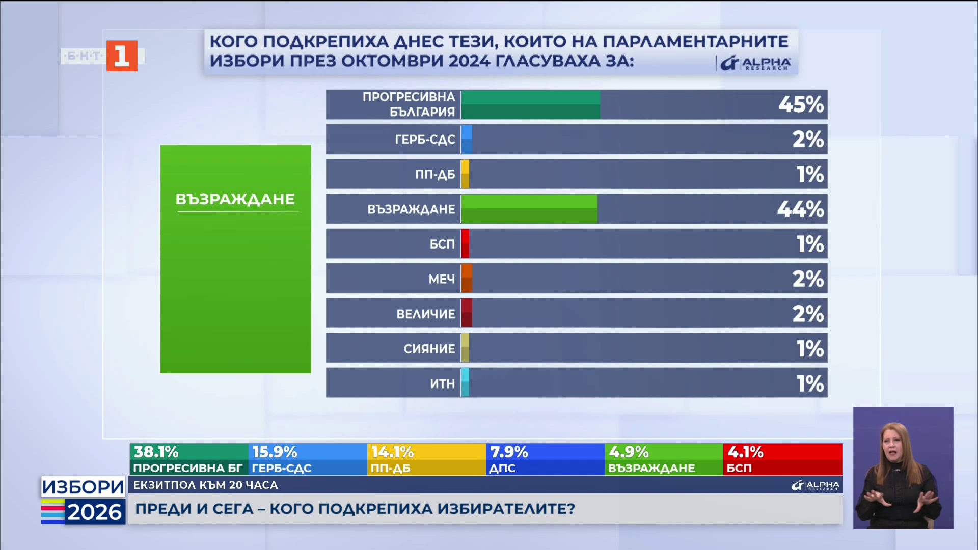 Какъв процент от избирателите на парламентарно представените партии днес гласуваха за Прогресивна България.