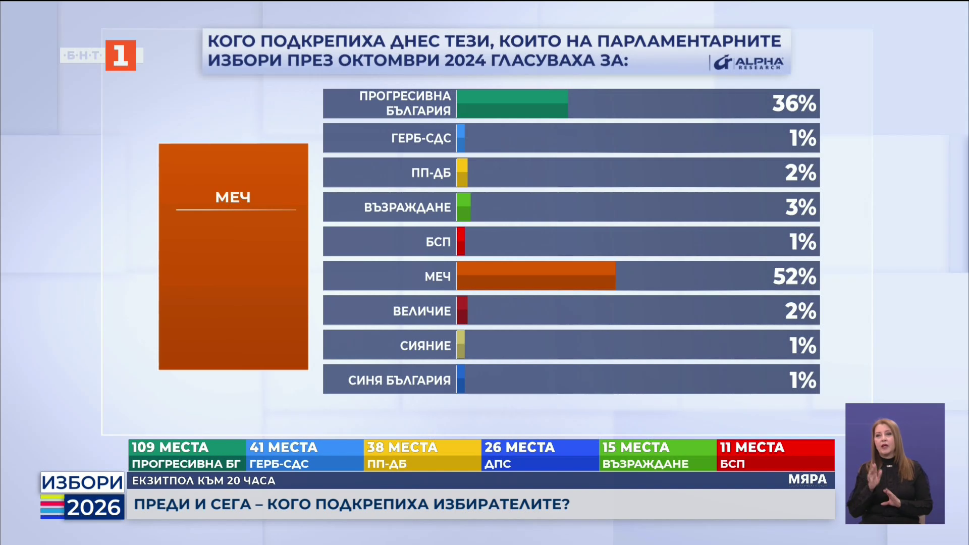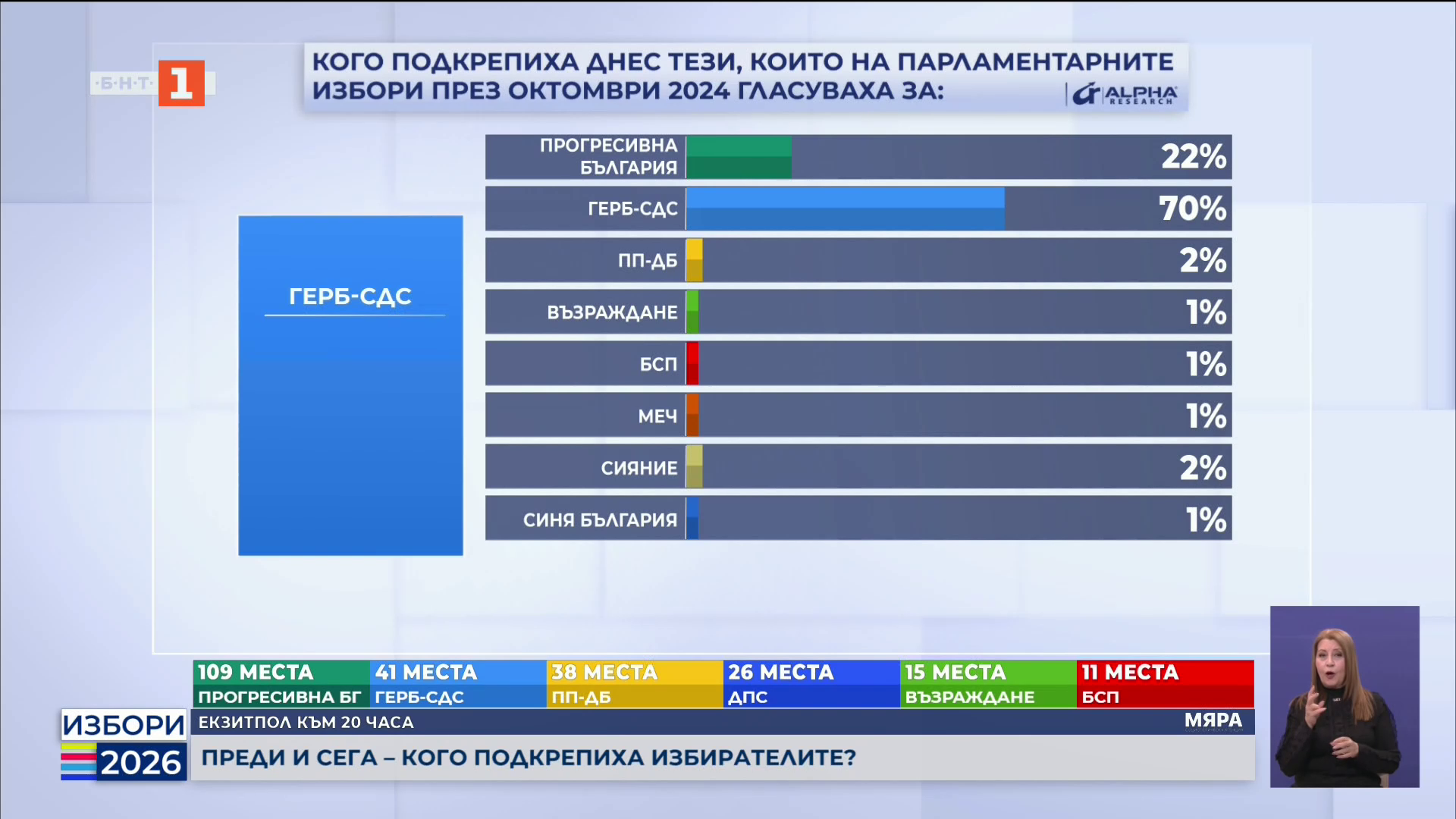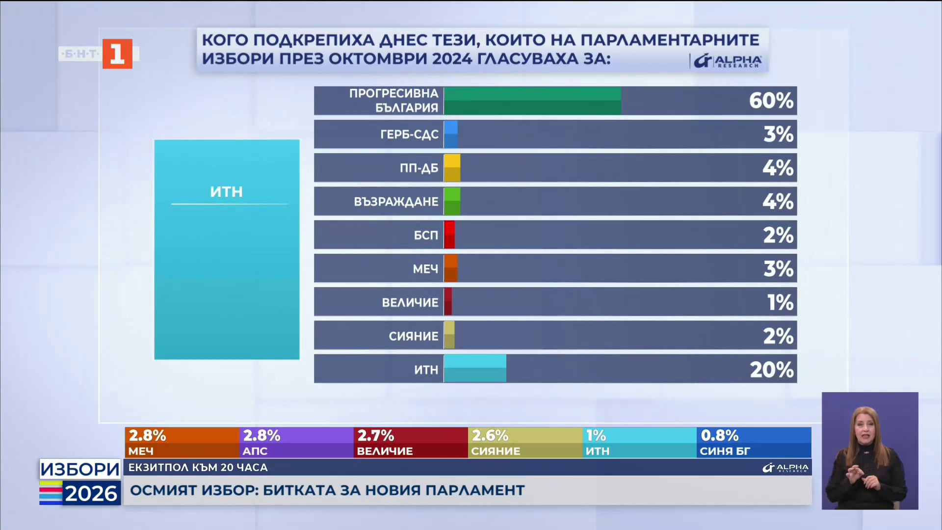 Какъв процент от избирателите на парламентарно представените партии днес гласуваха за Прогресивна България.