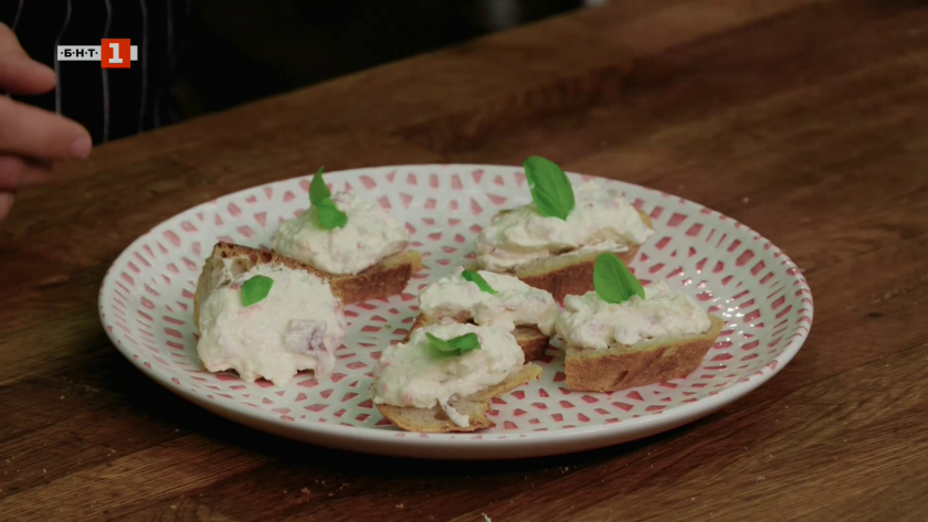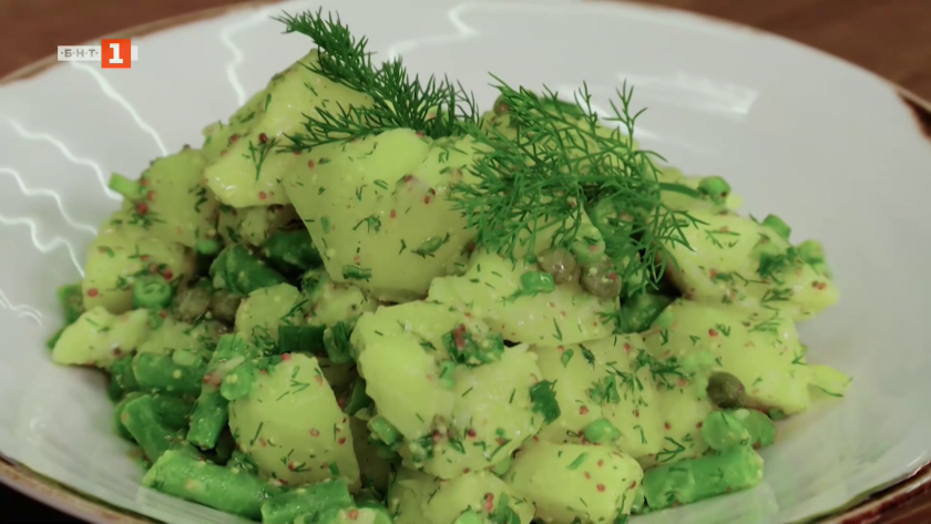 Разядка с консервирани чушки и картофена салата със зелен фасул