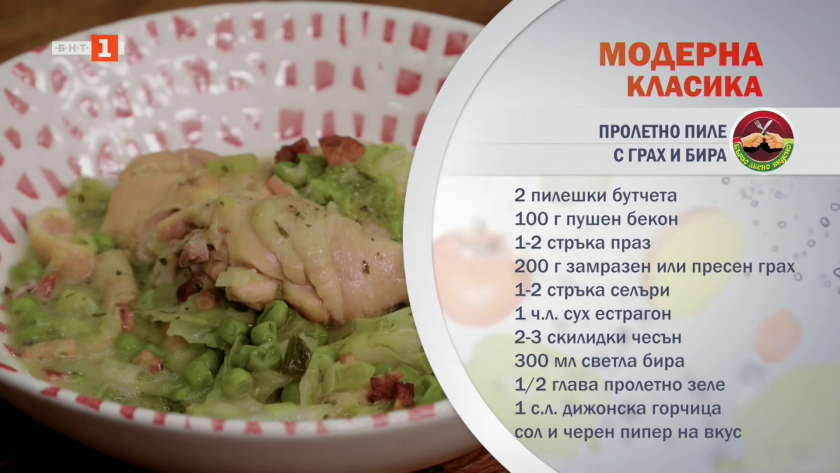 Пролетно пиле с грах и бира
