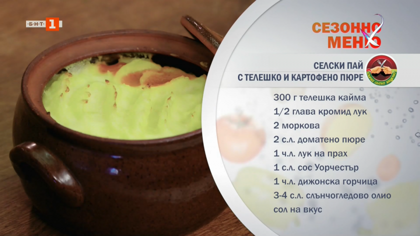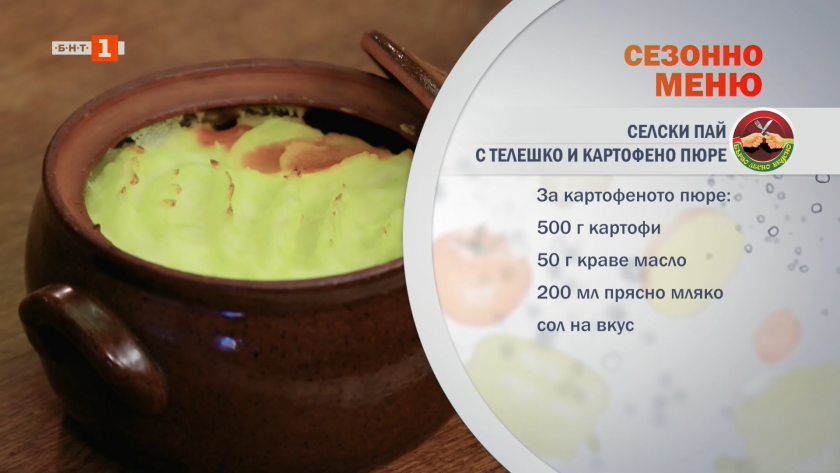Селски пай с телешко и картофено пюре и баница с тиква, ядки и стафиди