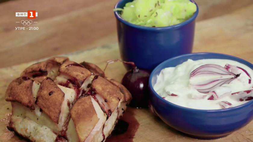 Пиле със зеле и содена питка със сухи чушки и семена
