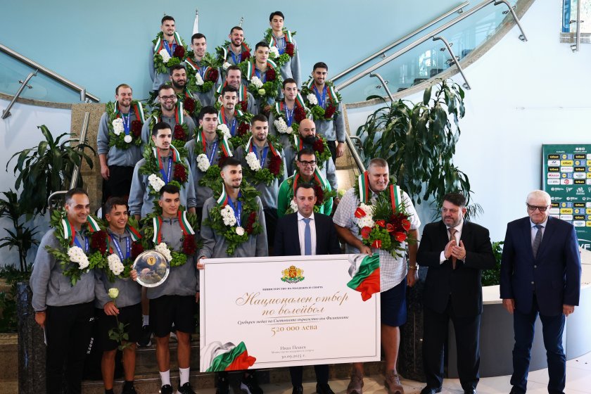 Те получиха по една бяла роза при прибирането си, както и чек с премия на стойност 520 000 лева от Министерството на младежта и спорта.