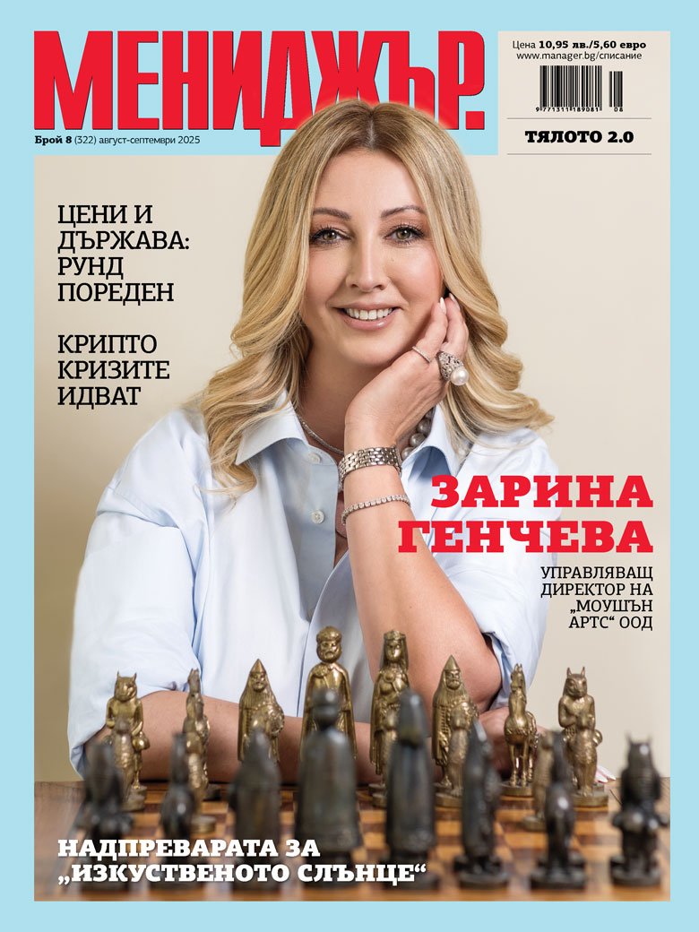 Това е брой, в който се срещат визии за бъдещето, каквато е „Надпреварата за „Изкуственото слънце“, с избори за настоящето - например с „AI или не“. За новата култура на комуникация разговаряме със Зарина Генчева, управляващ директор на „Моушън Артс“.