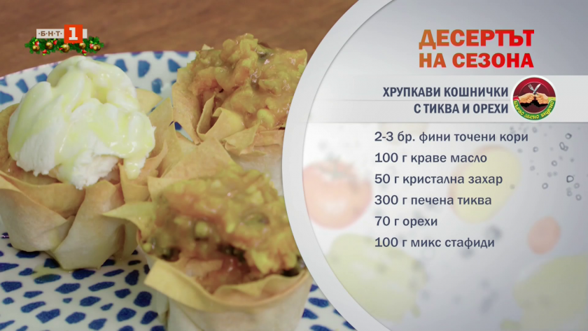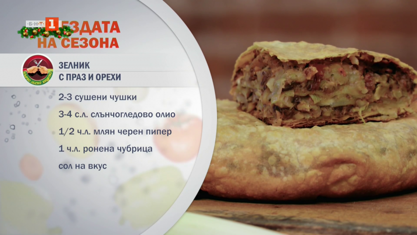 Зелник с праз и орехи и хрупкави кошнички с тиква и орехи