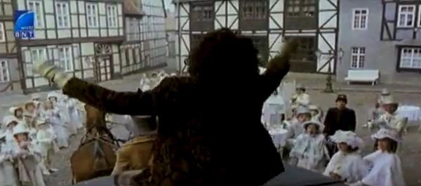 Малък европейски град в миналото. Всичко там е бяло, слънчево и прекрасно. Пристига непознат господин. Той води със себе си голяма дресирана маймуна.